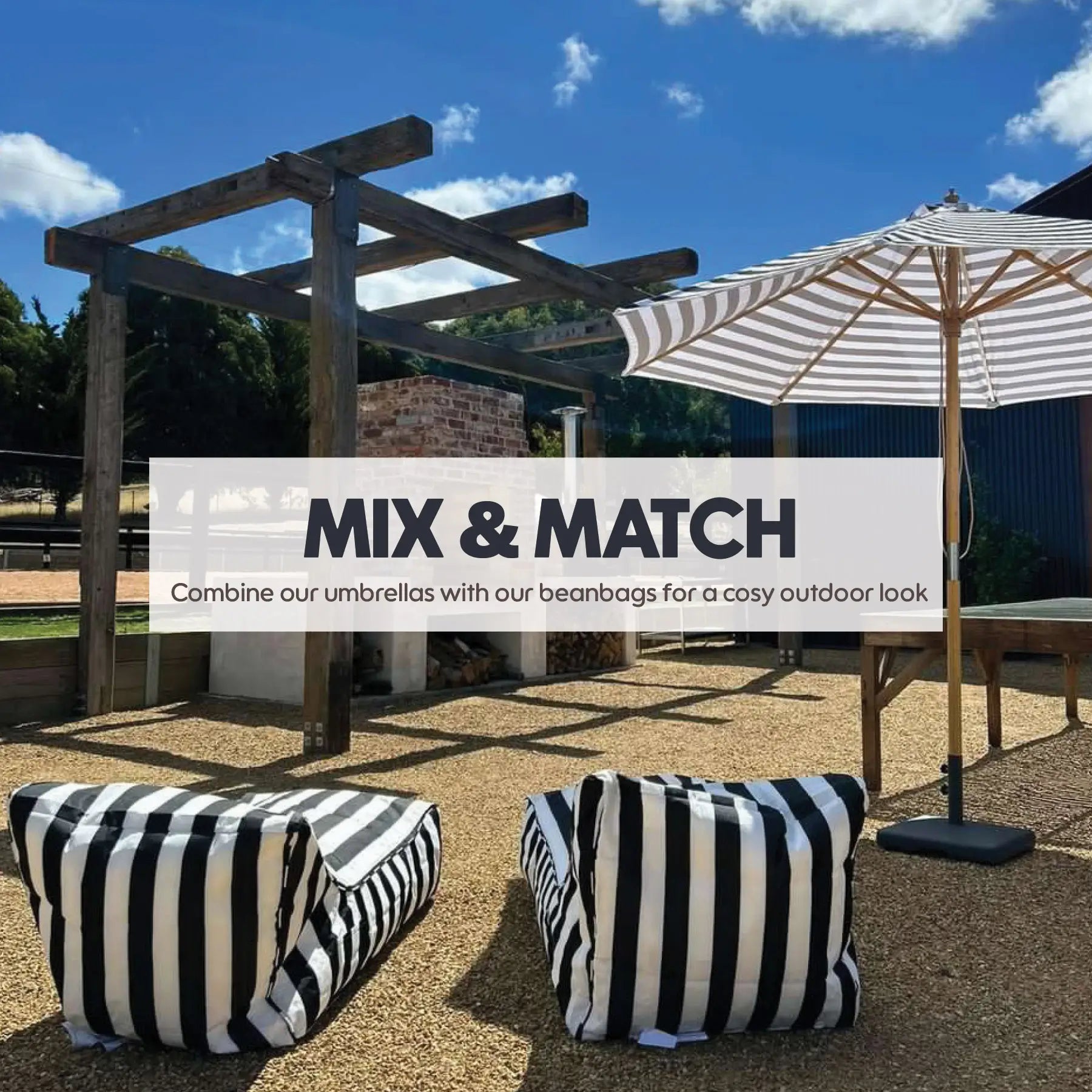 Hang Out Double Outdoor Beanbag - Blue & White Stripe