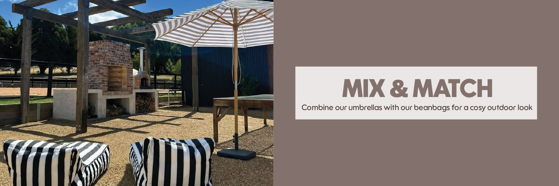 Flamingo 3m Bamboo Umbrella with Cover - Pink & White Stripe