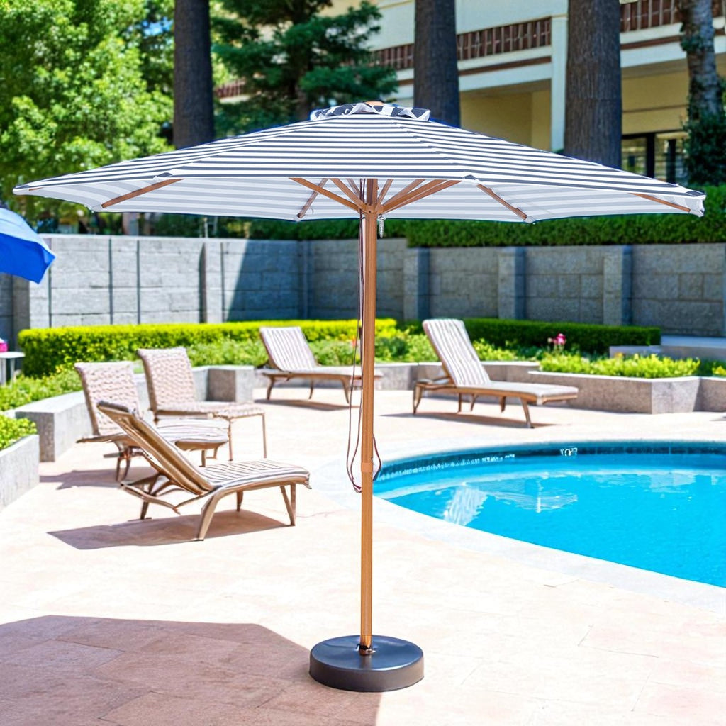 Add a pop of colour to your outdoor space with this bright, eye-catching aluminium framed Market umbrella. Powder coated in a "timber look" finish to enhance its beauty whilst making it extremely durable. Great for use in your backyard or in your commercial property.